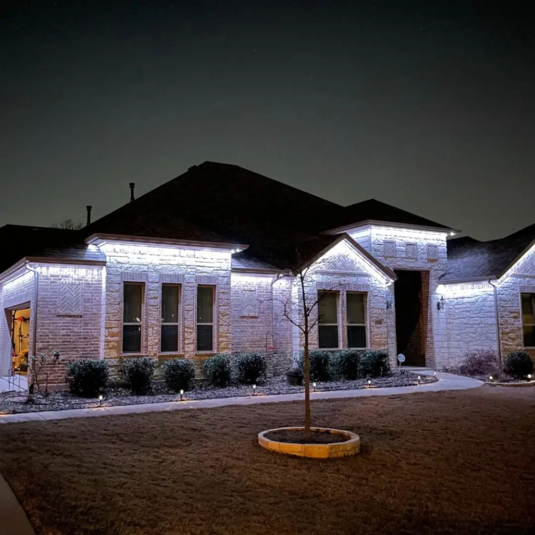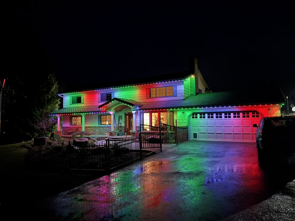 Our systems give you complete control: warm white architectural lighting for everyday elegance, vibrant holiday colors when it’s time to celebrate, and bright security lighting when you need peace of mind.